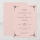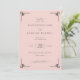 This wedding invitation features a symmetrical layout with a soft blush pink background, creating an elegant and warm atmosphere. The design includes stylish geometric corner motifs that add a touch of sophistication without overwhelming the central text. A mix of elegant script and classic serif fonts highlights the names and event details, ensuring readability and a formal tone. Perfect for couples seeking a minimalist yet refined aesthetic, this invitation sets the stage for a memorable celebration.