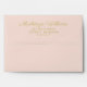Custom 5 x 7 envelopes feature a blush pink background colour with stylish gold coloured return address that can be personalised on the back flap. The gold text and blush pink envelope colour can both be modified.
