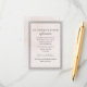 The Laced wedding invitation suite features a subtle blush pink watercolor background with a delicate black lace oval surrounding traditional text, a fancy script, and proper etiquette. The suite comes with all additional pieces, including reply cards, reception card, direction enclosures, belly bands, and more. Day-of items, including favour tags, wine labels, napkins, and table numbers are also available. Customise the text and text colours to be any colour you'd like.