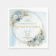 Elevate your Quinceañera celebration with these elegant paper napkins, beautifully designed with watercolor dusty blue flowers, soft eucalyptus greenery, and a shimmering gold glitter frame. The delicate floral arrangements in boho, bohemian, or watercolor styles paired with elegant script lettering create a refined, sophisticated look that perfectly complements any pastel or dusty blue themed party.