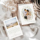 Experience the timeless charm of our sophisticated spring/summer wedding thank you photo cards, adorned with a wreath intertwined with white flower blooms (roses and peonies) and greenery leaves. With two enchanting snapshots of the newlyweds, these cards radiate grace and elegance. Simple minimalist calligraphy script adds a touch of style.