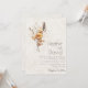 This stunning wedding invitation set is the perfect way to announce your upcoming nuptials in a style that is both elegant and bohemian. The invitation features a watercolor illustration of wildflowers in shades of autumnal colours, set against a background of ivory parchment look. The text is printed in a simple, sans serif font, and the overall effect is one of understated beauty.