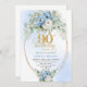 Elegant Boho Blue Floral 90th Birthday Invitation