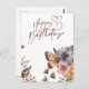 Celebrate someone special’s birthday with this elegant boho floral ‘Happy Birthday’ postcard. Featuring warm earth tones and leaves, this charming card is perfect for nature lovers. Personalize it with the recipient’s name to make it extra meaningful. Order yours today!