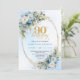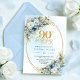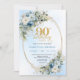 Elegant Boho Dusty Blue Floral Gold 90th Birthday Invitation