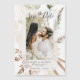 This elegant design features stunning spice brown, moss green, and cream bohemian floral bouquets. To enhance the details of your day, the script includes whimsical calligraphy and your lovely photo against a transparent deckled edge frame. Easily customise with your personal details to make it your own.