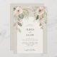Minimalist floral wedding invitation featuring simple design and elegant boho arch flower design.