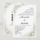 A refined boho floral wedding invitation set featuring a soft sage green and ivory watercolor eucalyptus frame. The front showcases an elegant minimalist layout with a clean centre for personalised text, while the matching back design is richly decorated with botanical elements and includes a dedicated space for a QR code—perfect for RSVP, wedding website, or event details. Romantic, organic, and timeless, ideal for modern garden or nature-inspired weddings.