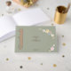 Elegant Boho Floral Calligraphy Wedding Foil Guest Book in sage green