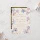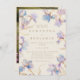 This elegant wedding invitation is perfect for spring and summer weddings. This design features a ring of watercolor irises in shades of lilac and periwinkle blue. Subtle touches of gold add a glistening, magical element.