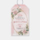 Elegant boho Quinceañera gift tag designed in soft blush pink and dusty pink tones with delicate floral details, eucalyptus greenery, and subtle rose gold accents. Perfect for Sweet 15 gifts, favors, and thank-you packages, adding a romantic and refined finishing touch to your celebration.
