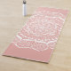 A beautiful yoga or exercise mat featuring a hand drawn boho inspired mandala design on a pink rose gold background. The perfect custom Christmas or Birthday gift for a yogi or fitness buff.