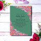 This elegant floral wedding invitation is perfect for a modern summer floral wedding. The romantic design features a blush watercolor floral wreath with elegant black typography on a green background.