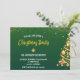 This Elegant Bokeh faux gold Glitter Pine Tree Christmas Party Invitation features:
