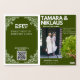 An elegant, bold, simple white on forest green slavic photo wedding invitation card with a modern bold font and real foil text, a photo and rsvp details with qr code.