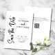 This unique Elegant Bold Script Black & White Formal Wedding Save the Date card features beautiful vertical script calligraphy and modern typography, and is fully customisable with your names, wedding details and a QR code for your wedding website. The classic black and white theme is perfect for weddings in any season.