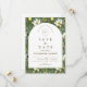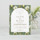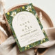 A sophisticated botanical design featuring rich green foliage and soft ivory blooms, framed within a timeless arched layout. The deep, nature-inspired tones bring a sense of depth and refinement, while the clean typography keeps the overall look elevated and effortless.