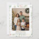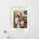 Send your warmest holiday wishes with this festive botanical family Christmas photo collage card. Soft pastel leaves and shimmering gold accents elegantly frame your cherished photos, creating a timeless holiday design. The front features a large customisable family portrait with your name and year, highlighted by a graceful modern calligraphy script for “Merry Christmas” paired with a refined serif font for the personalised text. On the back, a collage of four additional photos is framed in the same botanical style, alongside a fully editable message that you can personalise with your own Christmas greetings, New Year wishes, or special note. This beautiful card blends elegance, festive charm, and a personal touch — a keepsake your loved ones will treasure for years.