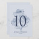 This elegant wedding table number card features a light blue background with a hand drawn coneflower illustration and vintage inspired typography in dusty blue tones. This design is double sided so both sides are exactly the same.. This design would be a fabulous choice for a wedding in any season. All colours of this design are customisable. See the collection for coordinating items!