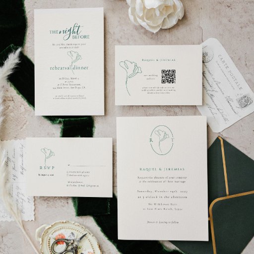 Elegant Botanical Emerald Monogram Wedding Invitation