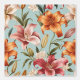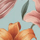 Peel and stick wallpaper featuring floral botanical pattern of lily flowers with a teal colour background.