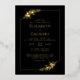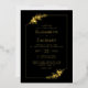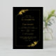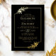 This simple, elegant design features real gold foil text on a black background, framed by a gold foil rectangle decorated with olive branch silhouettes in two corners. The back of the card is solid black.