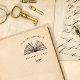 Beautiful and classy self-inking stamp with your custom name to personalize your library books. The stamp features "from the library of" in curved elegant text on the top, a gorgeous image of an open book at the center, and a delicate sprig on the bottom. Below the book is a name you can easily replace with yours. Great gift for the book lover or librarian!