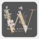 Elegant Botanical Greenery Purple Wedding Favour Square Sticker