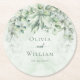 Elegant Botanical Greenery Wedding Round Paper Coaster