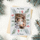 The front features your custom photo at the centre, framed by a fine white border and surrounded by a delicate watercolor botanical illustration of hand-drawn green leaves and red berries that gently evoke the spirit of Christmas. Graceful handwritten text adorns the top, while your family name appears below, creating a perfectly balanced and refined composition. The back of the card continues the minimalist elegance, featuring three of your favourite photos set against a soft, very light grey background. Subtle yet festive, this design captures the beauty of nature and the joy of the season, offering a heartfelt way to share your holiday greetings with loved ones.