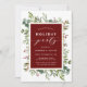 This Christmas | Holiday invitation features painted watercolor eucalyptus, green leaves, red berries, pine branches, and a faux gold rectangle frame with stylish calligraphy. For more advanced customization of this design, please click the "Customize further" link. Matching items are also available.