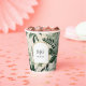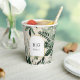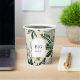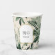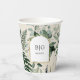 Watercolor botanic greenery themed paper cups for wedding, bridal shower, birthday, baby shower, anniversary baptism and more. This patterned paper cups features beautiful painted botanical foliage leaves with modern boho arch framed in faux gold foil line. Personalised with initials of the bride and groom or just a monogram. for garden, woodland and outdoor themed party this paper cups is an ideal choice to choose.