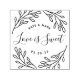 Custom-designed self-inking wedding favour stamp featuring modern elegant hand-drawn leaves and branches design. Personalise with bride and groom/couple's names and wedding date for a touch of style on wedding candy, honey, or sweets favours and gifts.