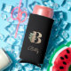 Elegant black can cooler with a gold botanical monogram in the centre.