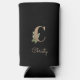 Elegant black can cooler with a gold botanical monogram in the centre.