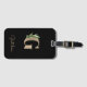 Elegant black luggage tag with a gold botanical monogram in the centre.