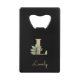Elegant black bottle opener with a gold botanical monogram in the centre.