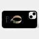 Elegant black phone case features a gold botanical monogram in the centre.