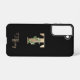 Elegant black phone case features a gold botanical monogram in the centre.