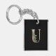 Elegant Botanical Monogram Gold Letter U Key Ring