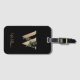 Elegant black luggage tag with a gold botanical monogram in the centre.