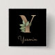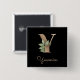 Elegant Botanical Monogram Gold Letter Y Button