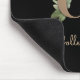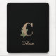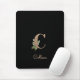 Elegant black mouse pad features a gold botanical monogram in the centre.