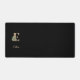 Elegant black desk mat features a gold botanical monogram in the centre.