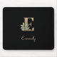 Elegant black mouse pad features a gold botanical monogram in the centre.