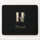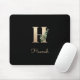 Elegant black mouse pad features a gold botanical monogram in the centre.