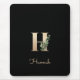 Elegant black mouse pad features a gold botanical monogram in the centre.