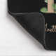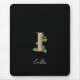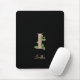 Elegant black mouse pad features a gold botanical monogram in the centre.