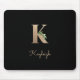 Elegant black mouse pad features a gold botanical monogram in the centre.