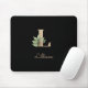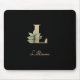 Elegant black mouse pad features a gold botanical monogram in the centre.